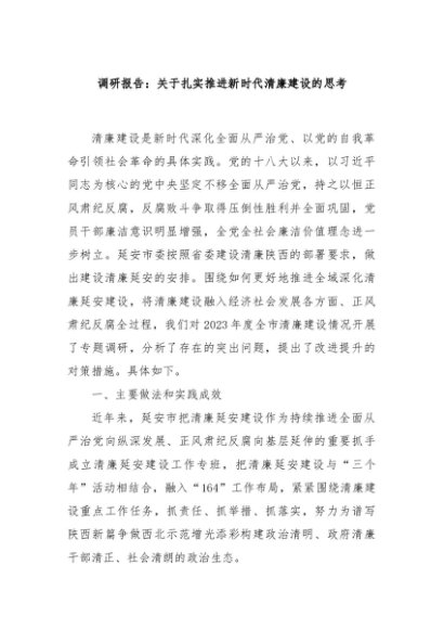 / 【七哥公文】2025年:调研报告:关于扎实推进新时代清廉建设的思考+更多免费公文+VX:QiGeGongWen2024