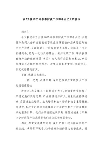 / 【七哥公文】2025年:在XX镇2025年秋季防疫工作部署会议上的讲话+更多免费公文+VX:QiGeGongWen2024