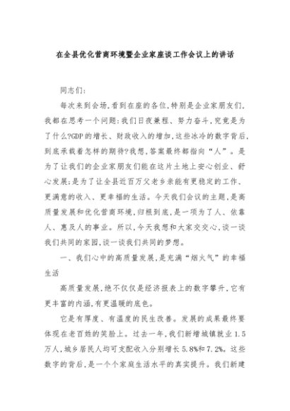 / 【七哥公文】2025年:在全县优化营商环境暨企业家座谈工作会议上的讲话+更多免费公文+VX:QiGeGongWen2024