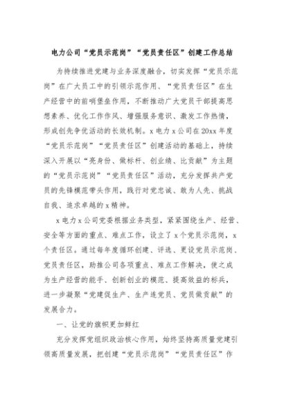 / 【七哥公文】2025年:电力公司“党员示范岗”“党员责任区”创建工作总结+更多免费公文+VX:QiGeGongWen2024