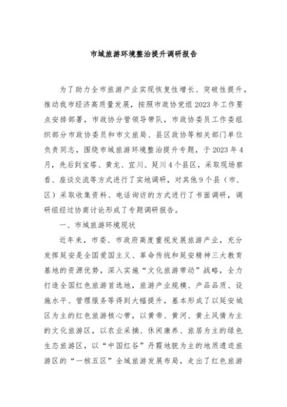 【七哥公文】2025年:市域旅游环境整治提升调研报告+更多免费公文+VX:QiGeGongWen2024