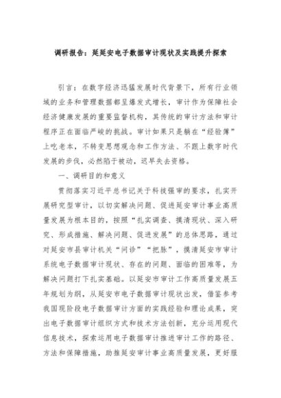 【七哥公文】2025年:调研报告:延延安电子数据审计现状及实践提升探索+更多免费公文+VX:QiGeGongWen2024