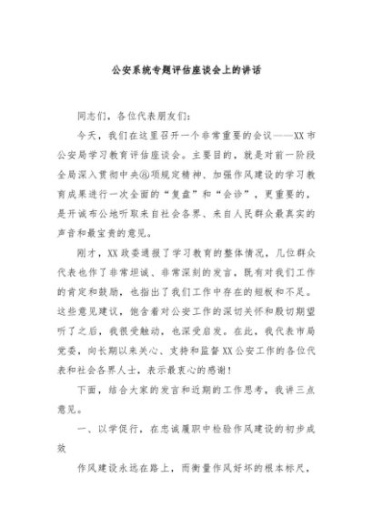 / 【七哥公文】2025年:公安系统专题评估座谈会上的讲话+更多免费公文+VX:QiGeGongWen2024