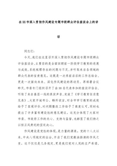 【七哥公文】2025年:在XX市深入贯彻作风建设专题市级群众评估座谈会上的讲话+更多免费公文+VX:QiGeGongWen2024