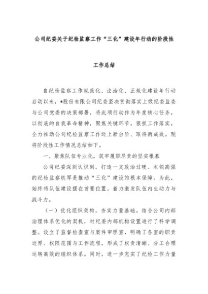 【七哥公文】2025年:公司纪委关于纪检监察工作“三化”建设年行动的阶段性工作总结+更多免费公文+VX:QiGeGongWen2024
