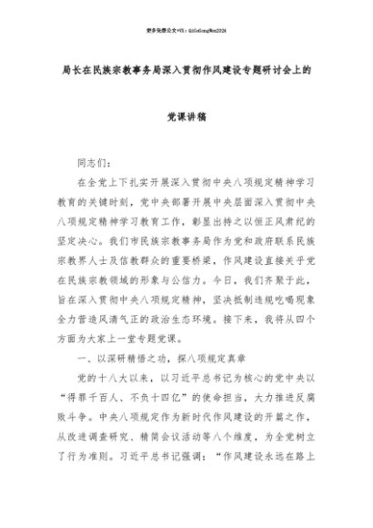 【七哥公文】2025年:【七哥公文】局长在民族宗教事务局深入贯彻作风建设专题研讨会上的党课讲稿+更多免费公文+VX:QiGeGongWen2024+更多免费公文+VX:QiGeGongWen2024