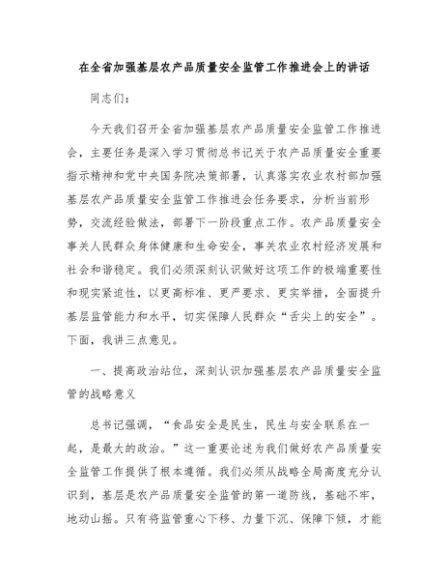 【七哥公文】2025年:在全省加强基层农产品质量安全监管工作推进会上的讲话+更多免费公文+VX:QiGeGongWen2024