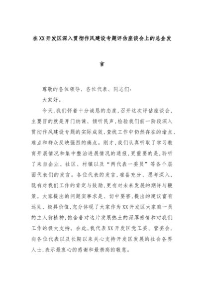 【七哥公文】2025年:在XX开发区深入贯彻作风建设专题评估座谈会上的总金发言+更多免费公文+VX:QiGeGongWen2024