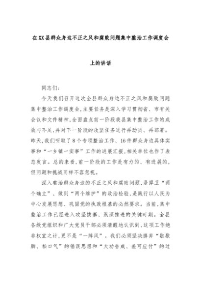 【七哥公文】2025年:在XX县群众身边不正之风和腐败问题集中整治工作调度会上的讲话+更多免费公文+VX:QiGeGongWen2024