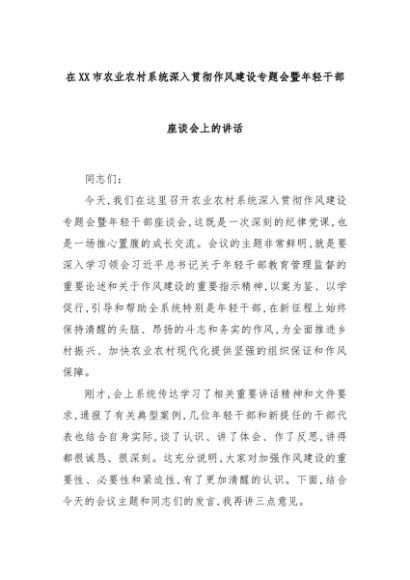 【七哥公文】2025年:在XX市农业农村系统深入贯彻作风建设专题会暨年轻干部座谈会上的讲话+更多免费公文+VX:QiGeGongWen2024