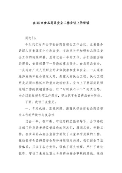 / 【七哥公文】2025年:在XX市食品药品安全工作会议上的讲话+更多免费公文+VX:QiGeGongWen2024