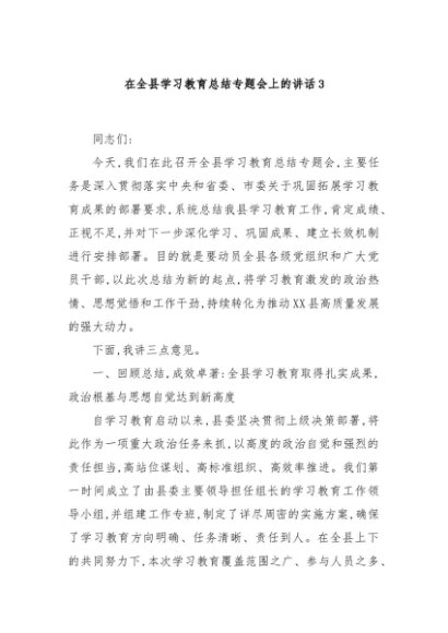 / 【七哥公文】2025年:在全县学习教育总结专题会上的讲话3+更多免费公文+VX:QiGeGongWen2024