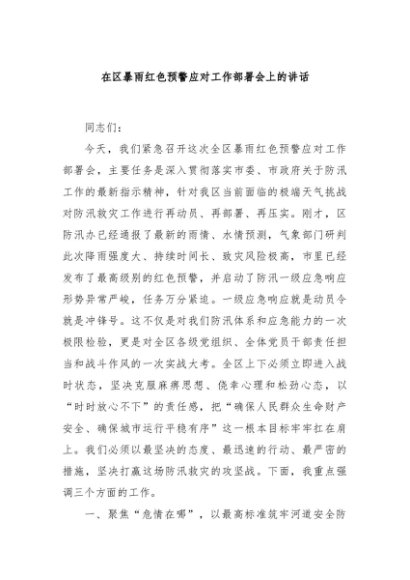 / 【七哥公文】2025年:在区暴雨红色预警应对工作部署会上的讲话+更多免费公文+VX:QiGeGongWen2024