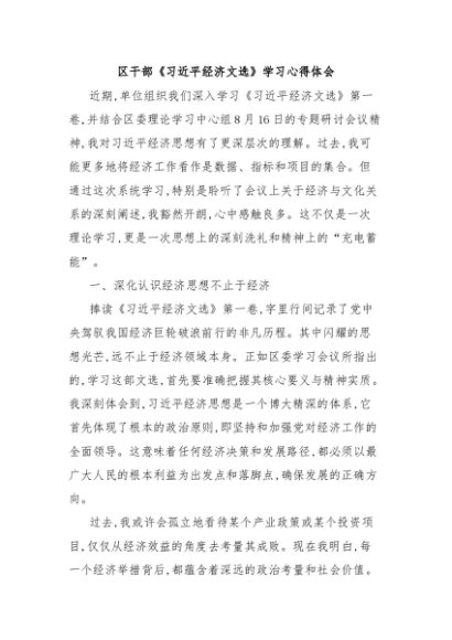 【七哥公文】2025年:区干部《习近平经济文选》学习心得体会+更多免费公文+VX:QiGeGongWen2024