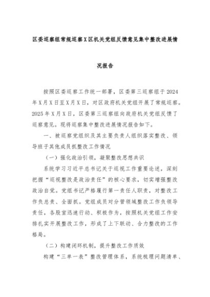【七哥公文】2025年:区委巡察组常规巡察X区机关党组反馈意见集中整改进展情况报告+更多免费公文+VX:QiGeGongWen2024