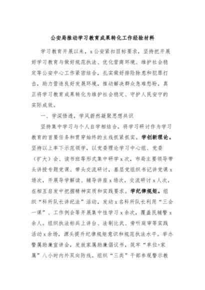 / 【七哥公文】2025年:公安局推动学习教育成果转化工作经验材料+更多免费公文+VX:QiGeGongWen2024