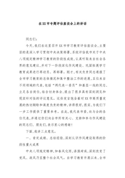 【七哥公文】2025年:在XX市专题评估座谈会上的讲话+更多免费公文+VX:QiGeGongWen2024