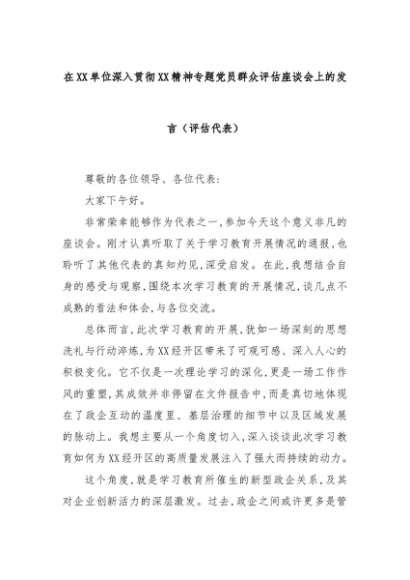 【七哥公文】2025年:在XX单位深入贯彻XX精神专题党员群众评估座谈会上的发言(评估代表)+更多免费公文+VX:QiGeGongWen2024