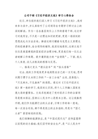 / 【七哥公文】2025年:公司干部《习近平经济文选》学习心得体会+更多免费公文+VX:QiGeGongWen2024