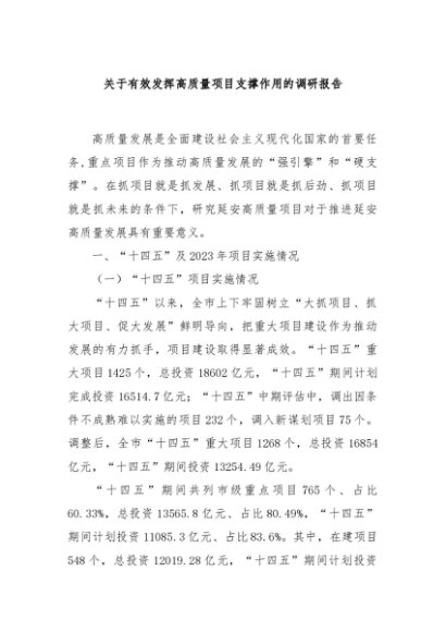 / 【七哥公文】2025年:关于有效发挥高质量项目支撑作用的调研报告+更多免费公文+VX:QiGeGongWen2024