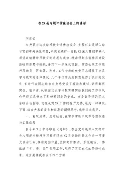 / 【七哥公文】2025年:在XX县专题评估座谈会上的讲话+更多免费公文+VX:QiGeGongWen2024