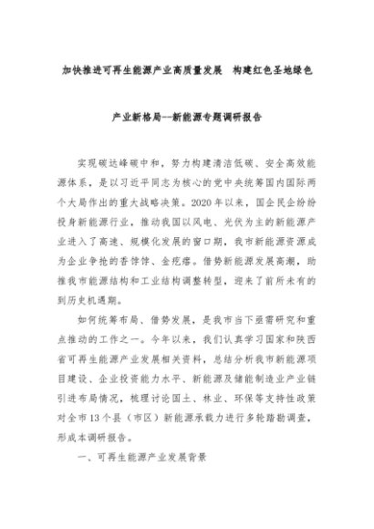 【七哥公文】2025年:加快推进可再生能源产业高质量发展 构建红色圣地绿色产业新格局--新能源专题调研报告+更多免费公文+VX:QiGeGongWen2024