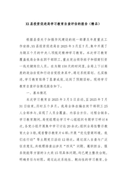 / 【七哥公文】2025年:XX县投资促进局学习教育自查评估的报告(精品)+更多免费公文+VX:QiGeGongWen2024