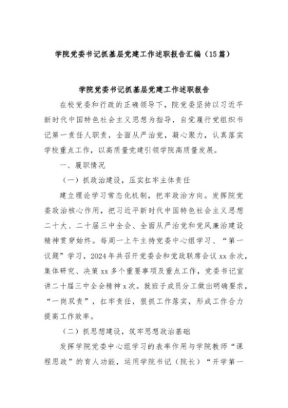 / 【七哥公文】2025年:(15篇)学院党委书记抓基层党建工作述职报告汇编+更多免费公文+VX:QiGeGongWen2024