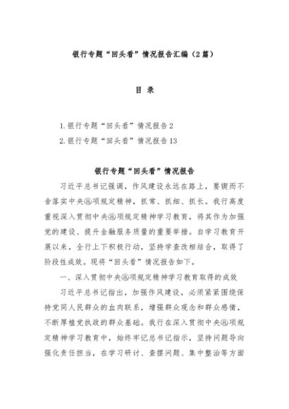 / 【七哥公文】2025年:(2篇)银行专题“回头看”情况报告汇编+更多免费公文+VX:QiGeGongWen2024