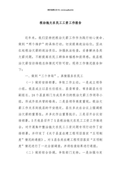 【七哥公文】2025年:【七哥公文】根治拖欠农民工工资工作报告+更多免费公文+VX:QiGeGongWen2024+更多免费公文+VX:QiGeGongWen2024