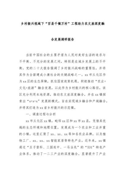 【七哥公文】2025年:乡村振兴视域下“百县千镇万村”工程助力农文旅深度融合发展调研报告+更多免费公文+VX:QiGeGongWen2024
