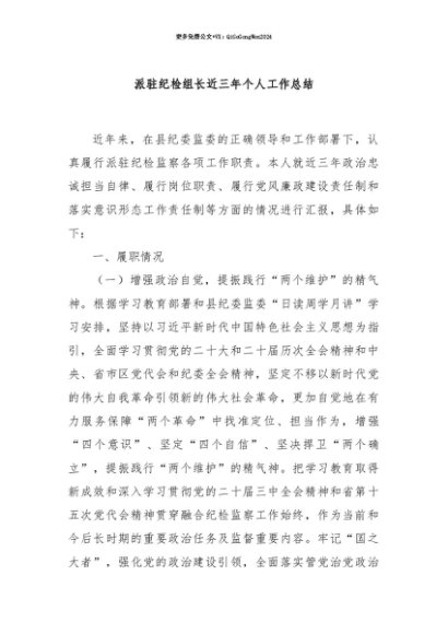 【七哥公文】2025年:【七哥公文】派驻纪检组长近三年个人工作总结+更多免费公文+VX:QiGeGongWen2024+更多免费公文+VX:QiGeGongWen2024