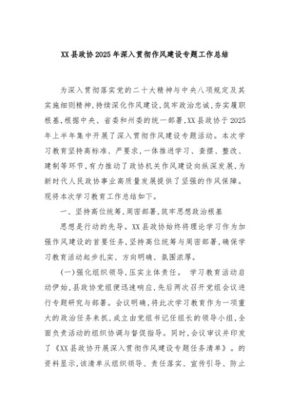 / 【七哥公文】2025年:XX县政协2025年深入贯彻作风建设专题工作总结+更多免费公文+VX:QiGeGongWen2024