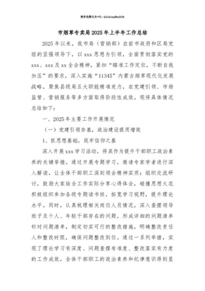 【七哥公文】2025年:【七哥公文】市烟草专卖局2025年上半年工作总结+更多免费公文+VX:QiGeGongWen2024+更多免费公文+VX:QiGeGongWen2024