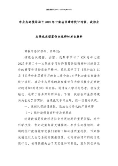 【七哥公文】2025年:【七哥公文】市生态环境局局长2025年云南省曲靖市统计造假、政治生态恶化典型案例交流研讨发言材料+更多免费公文+VX:QiGeGongWen2024+更多免费公文+VX:QiGeGongWen2024