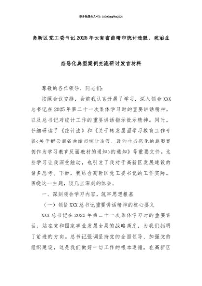 【七哥公文】2025年:【七哥公文】高新区党工委书记2025年云南省曲靖市统计造假、政治生态恶化典型案例交流研讨发言材料+更多免费公文+VX:QiGeGongWen2024+更多免费公文+VX:QiGeGongWen2024