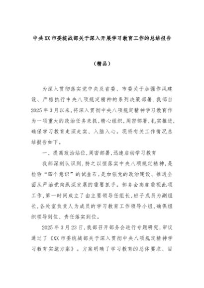 【七哥公文】2025年:中共XX市委统战部关于深入开展学习教育工作的总结报告(精品)+更多免费公文+VX:QiGeGongWen2024