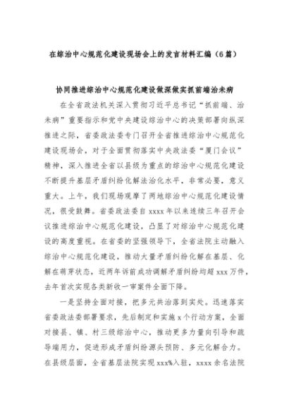 【七哥公文】2025年:(6篇)在综治中心规范化建设现场会上的发言材料汇编+更多免费公文+VX:QiGeGongWen2024