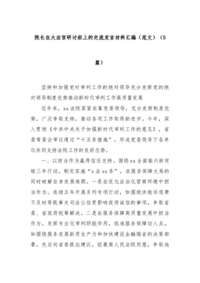 【七哥公文】2025年:(5篇)院长在大法官研讨班上的交流发言材料汇编(范文)+更多免费公文+VX:QiGeGongWen2024