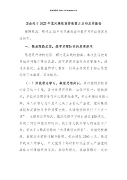 【七哥公文】2025年:【七哥公文】国企关于2025年党风廉政宣传教育月活动总结报告+更多免费公文+VX:QiGeGongWen2024+更多免费公文+VX:QiGeGongWen2024