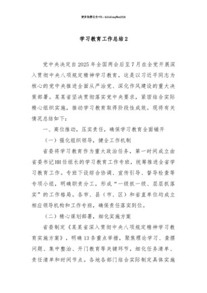 【七哥公文】2025年:【七哥公文】学习教育工作总结2+更多免费公文+VX:QiGeGongWen2024+更多免费公文+VX:QiGeGongWen2024