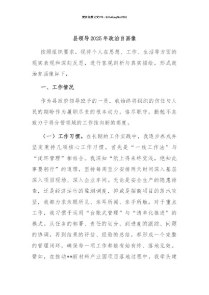 【七哥公文】2025年:【七哥公文】县领导2025年政治自画像+更多免费公文+VX:QiGeGongWen2024+更多免费公文+VX:QiGeGongWen2024