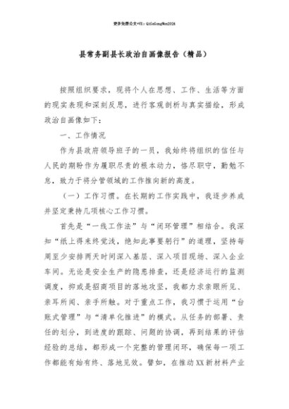 【七哥公文】2025年:【七哥公文】县常务副县长政治自画像报告(精品)+更多免费公文+VX:QiGeGongWen2024+更多免费公文+VX:QiGeGongWen2024