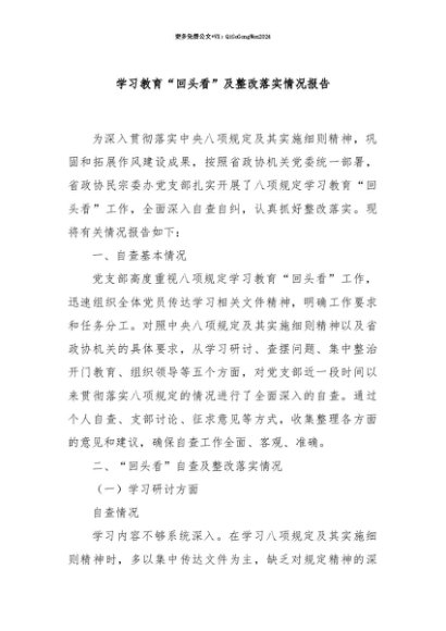 【七哥公文】2025年:【七哥公文】学习教育“回头看”及整改落实情况报告+更多免费公文+VX:QiGeGongWen2024+更多免费公文+VX:QiGeGongWen2024