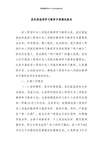 【七哥公文】2025年:【七哥公文】县纪委监委学习教育开展情况报告+更多免费公文+VX:QiGeGongWen2024+更多免费公文+VX:QiGeGongWen2024