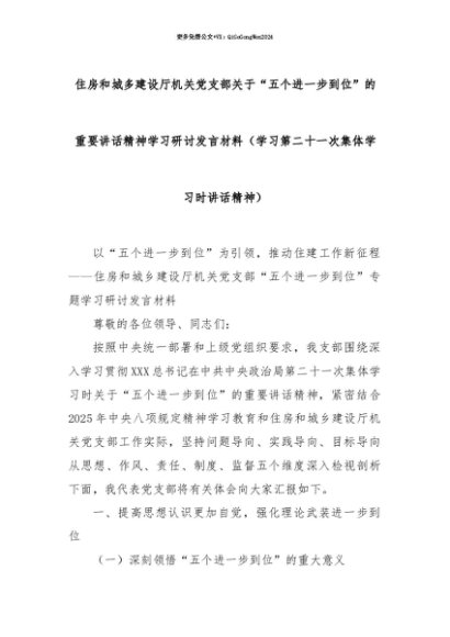 【七哥公文】2025年:【七哥公文】住房和城多建设厅机关党支部关于“五个进一步到位”的重要讲话精神学习研讨发言材料(学习第二十一次集体学习时讲话精神)_副本+更多免费公文+VX:QiGeGongWen2024+更多免费公文+VX:QiGeGongWen2024