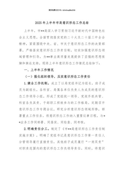 【七哥公文】2025年:【七哥公文】2025年上半年市局意识形态工作总结+更多免费公文+VX:QiGeGongWen2024+更多免费公文+VX:QiGeGongWen2024
