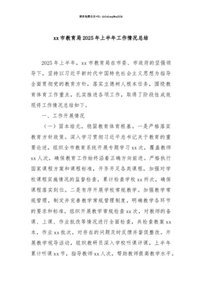 【七哥公文】2025年:【七哥公文】xx市教育局2025年上半年工作情况总结+更多免费公文+VX:QiGeGongWen2024+更多免费公文+VX:QiGeGongWen2024