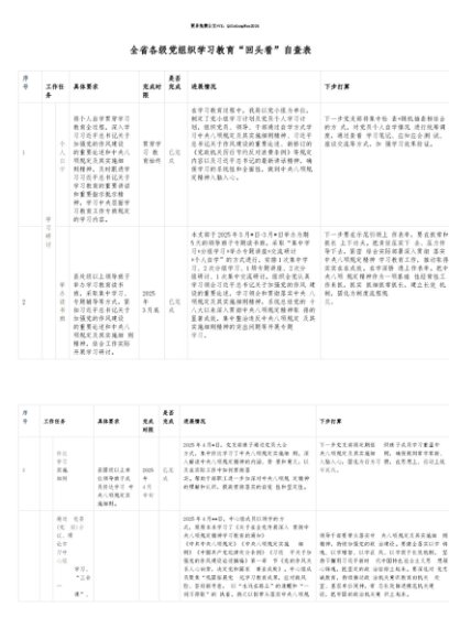 【七哥公文】2025年:【七哥公文】全省各级党组织学习教育“回头看”自查表+更多免费公文+VX:QiGeGongWen2024+更多免费公文+VX:QiGeGongWen2024