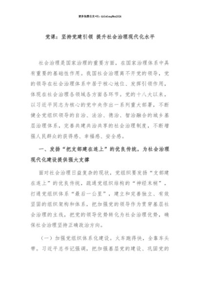 【七哥公文】2025年:【七哥公文】党课:坚持党建引领 提升社会治理现代化水平+更多免费公文+VX:QiGeGongWen2024+更多免费公文+VX:QiGeGongWen2024
